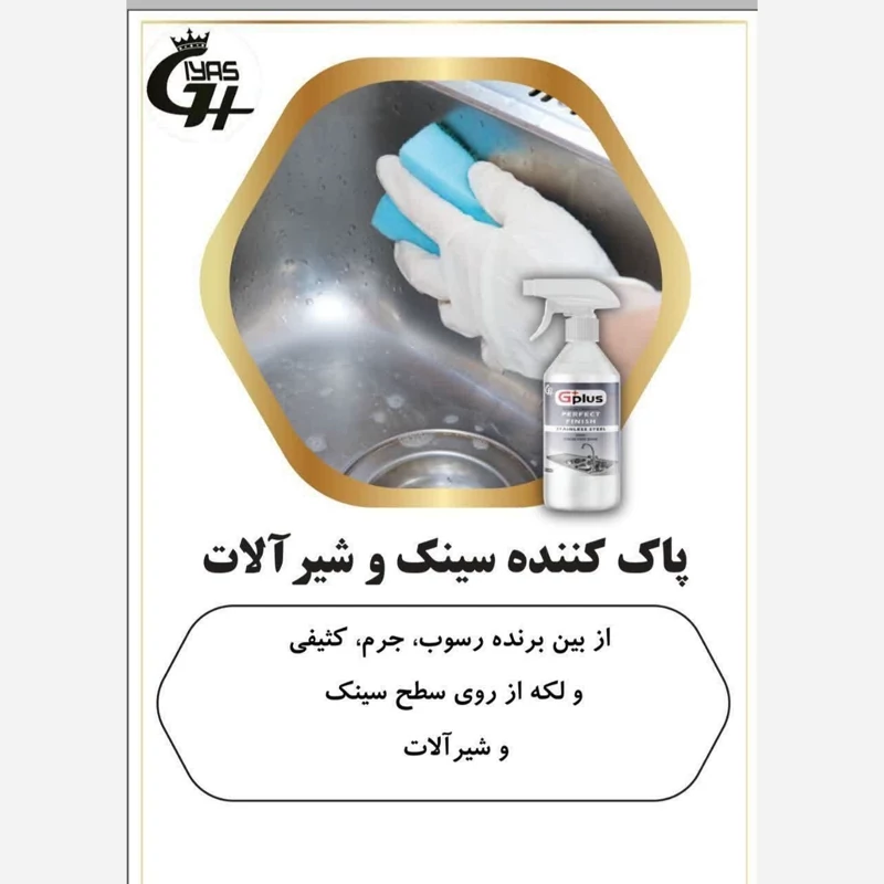 پاک کننده سینک و شیر آلات (نانو جی پلاس) این محصول برای کلیه سطوح فلزی از جمله سینک و شیر آلات و جرم و کثیفی سینک و شیر آلات مناسب است ❌کافیه فقط این محلول نانو رو روی سطوح مورد نظر اسپری کنید و 15 ثانیه صبر کنید و با یک دستمال اون رو تمیز کنید اگر جرم سطوح سنگین بود چند بار این کار رو تکرار کنید شما میتوانید سخت ترین و قدیمی ترین لکه ها را به راحتی با استفاده از این مایع اسپری نانو برطرف کنید ❌هرگز این محصول را با اسیدها جرمگیر و سفید کننده ها ترکیب نکنید❌