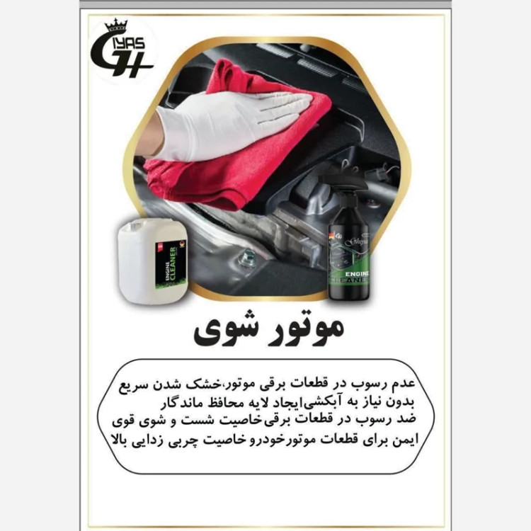 🚗موتور شوی🚗 وزن : 500 سی سی 💦خاصیت شست و شوی قوی 💦ایمن برای قطعات موتور خودرو 💦ضد رسوب در قطعات برقی 💦خاصیت چربی زدایی بالا 💦عدم رسوب در قطعات برقی موتور 💦ایجاد لایه محافظ ماندگار 💦خشک شدن سریع بدون نیاز به آب ❌روش استفاده موتور شوی : مقدار مناسبی از محصول را بر روی سطح مورد نظر اسپری کنید و پس از 30 ثانیه با دستمال نرم تمام آلودگی و چربی و لک ها را پاک نمایید❌ هشدار در حین استفاده حتما از دستکش استفاده شود و به هیچ عنوان به رنگ بدنه اسپری نشود. در صورت وقوع سریعا با آب و کف شسته شود کمتر